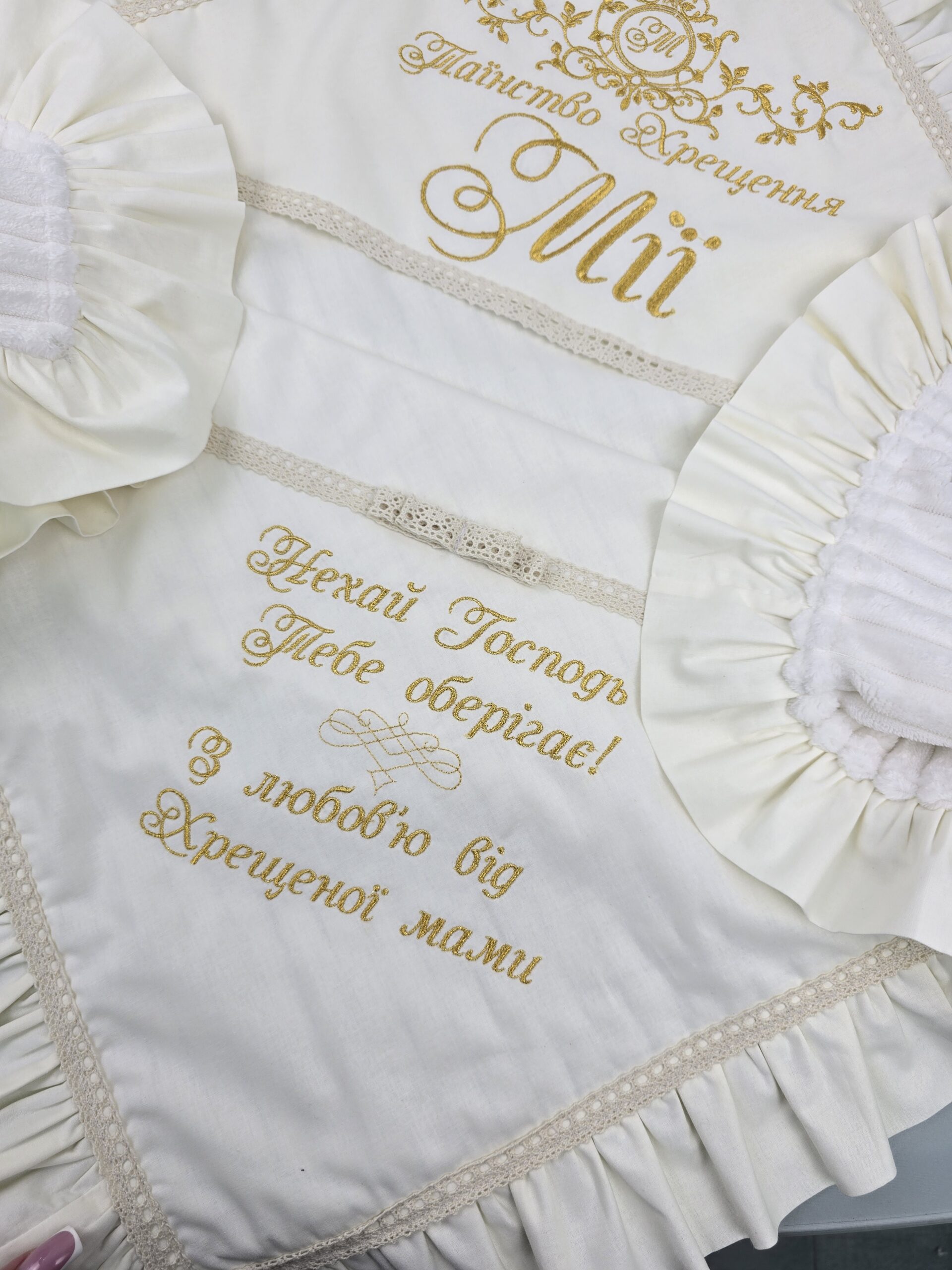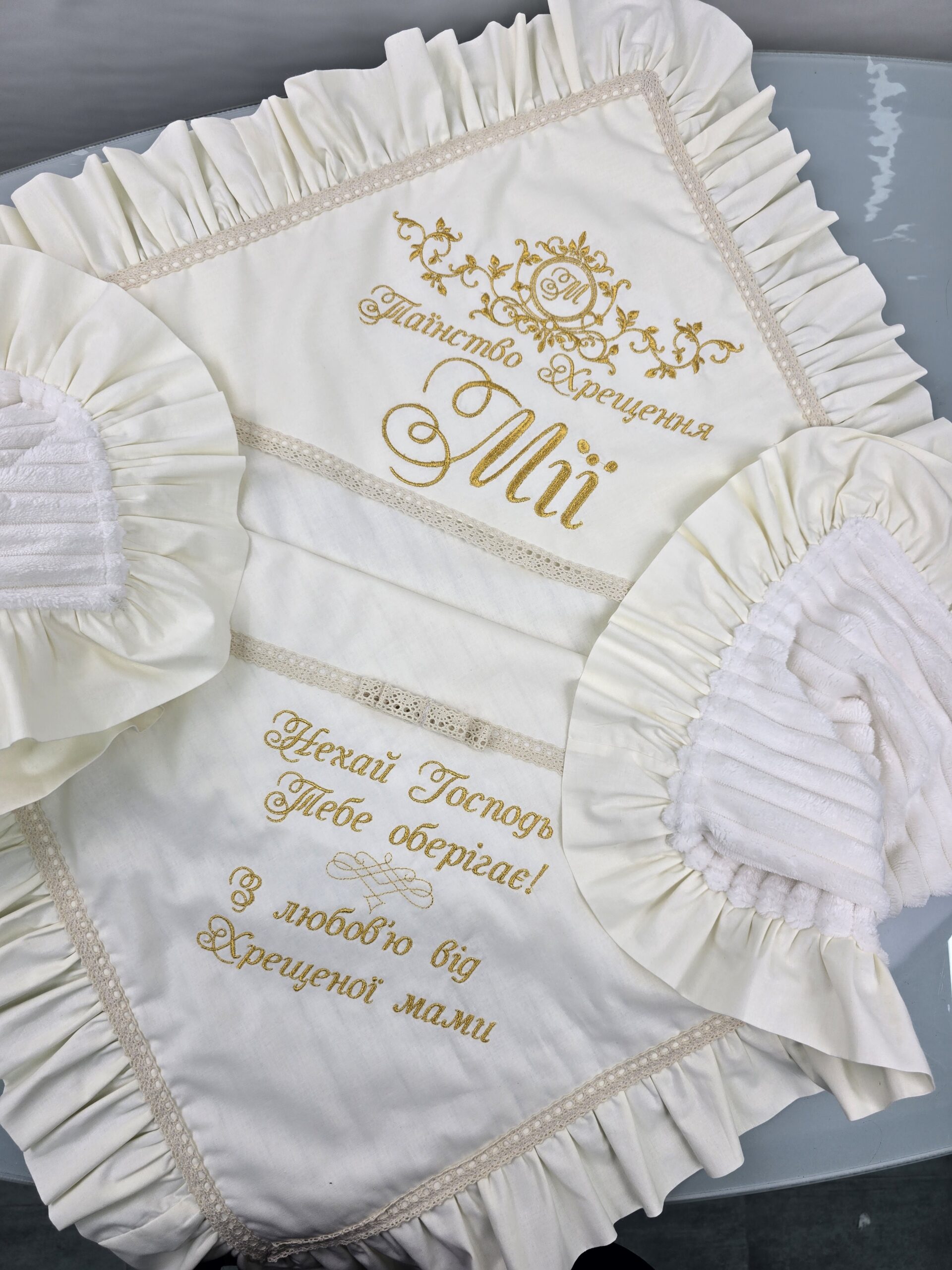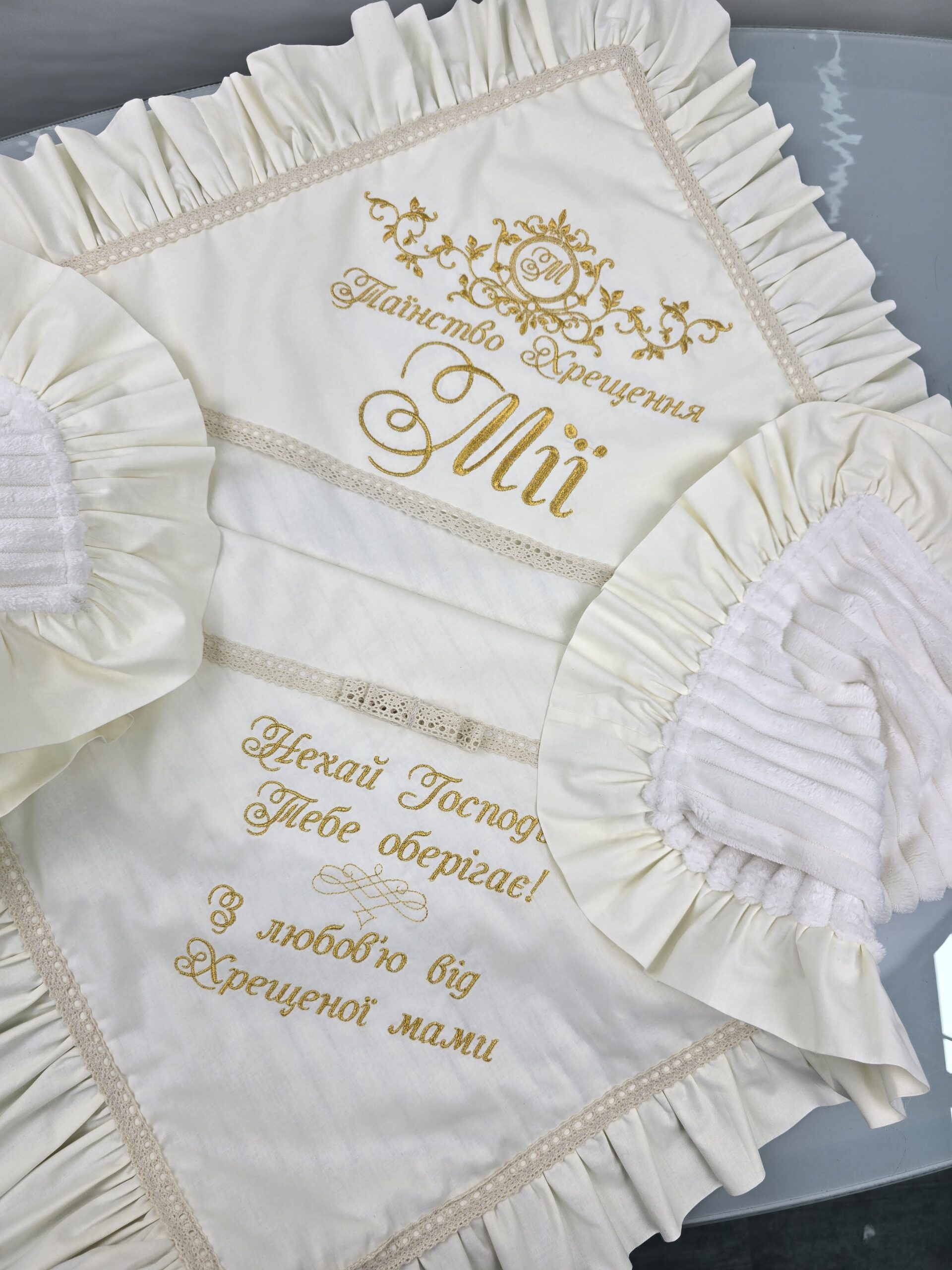 Іменна крижма-пледик з рюшами
