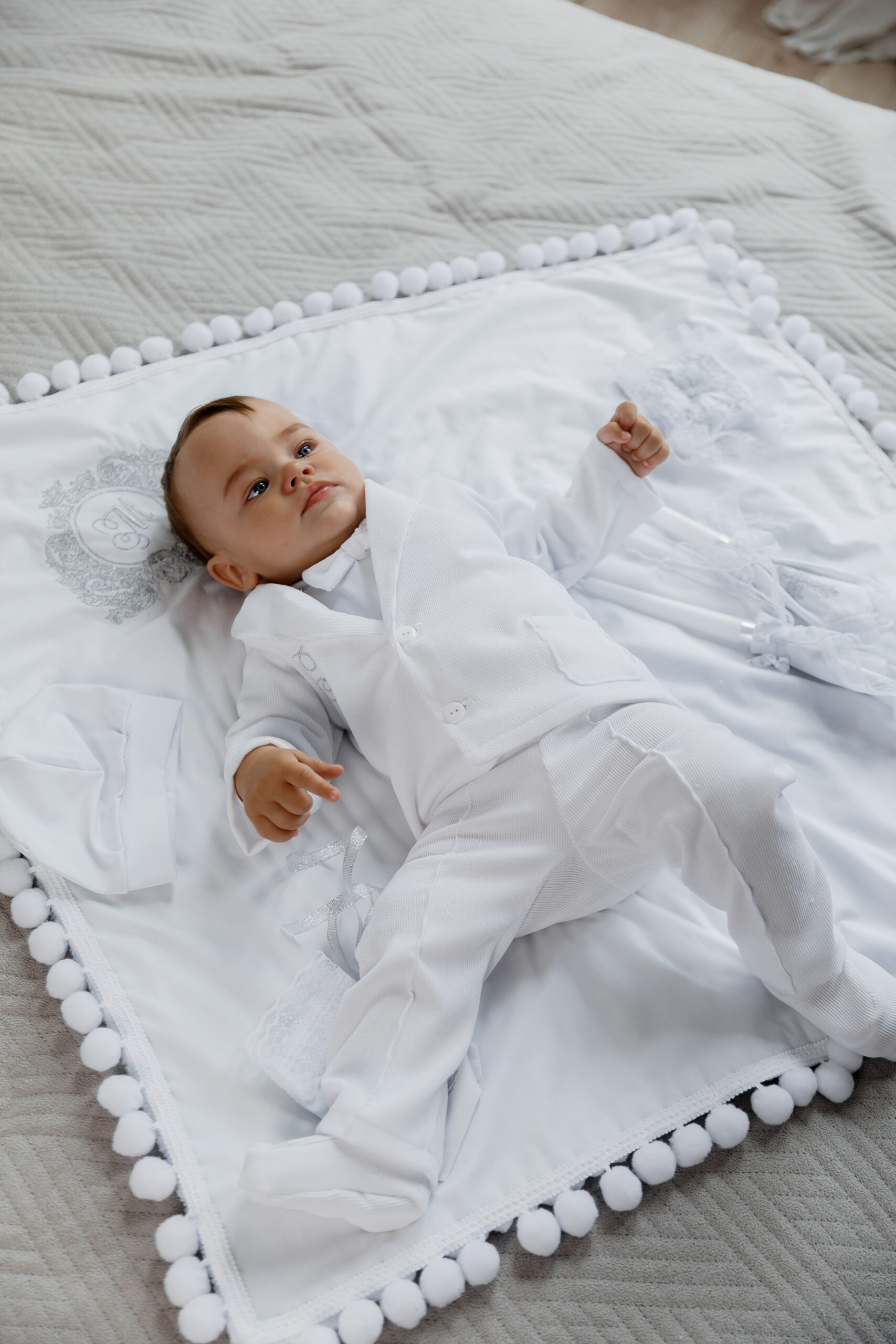 Костюм «Джентльмен» від ТМ «Янголятко» — це бездоганний вибір для хрещення, який створює образ маленького джентльмена з перших днів життя