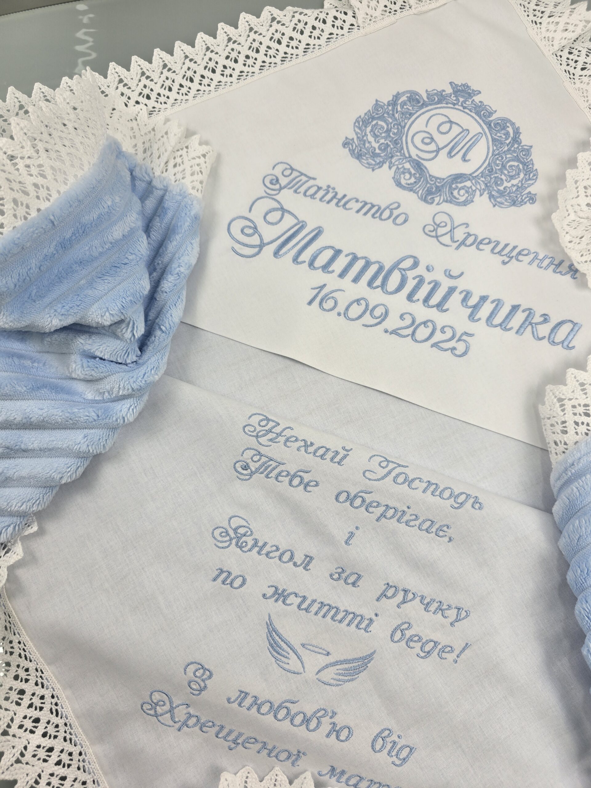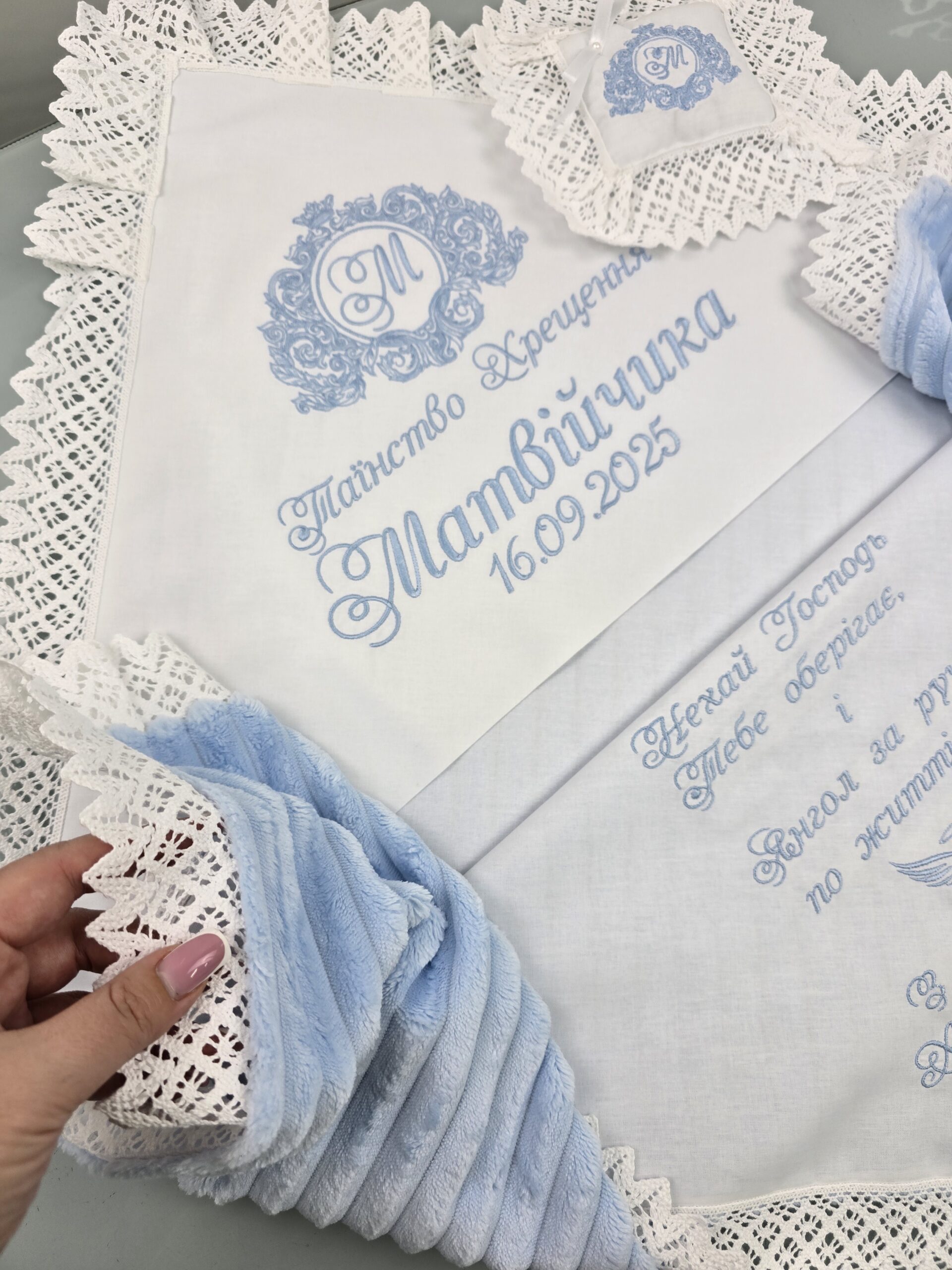 Крижма з ранфорсу та страйпу — це поєднання натуральності, ніжності та елегантного вигляду для особливого дня хрещення
