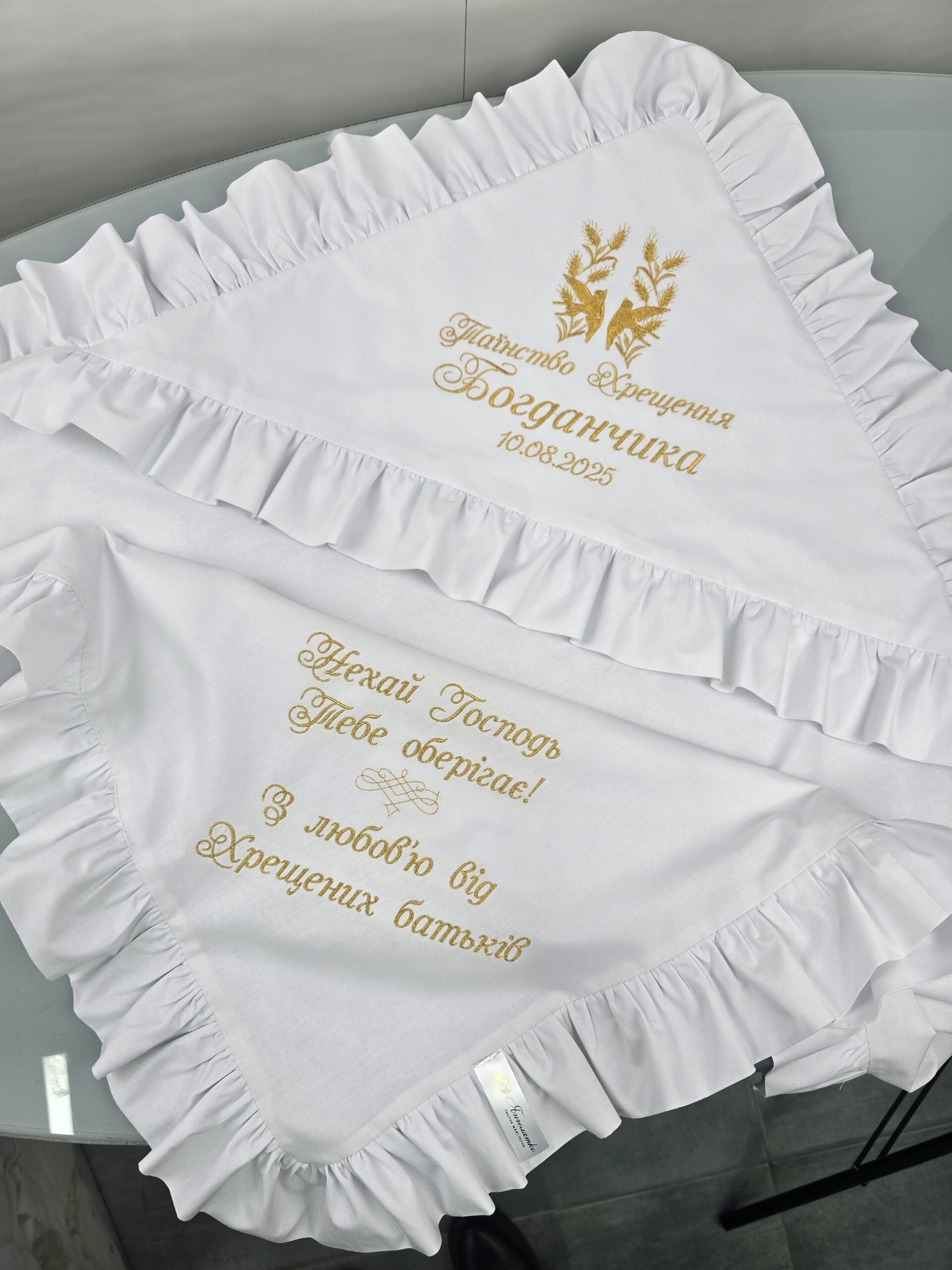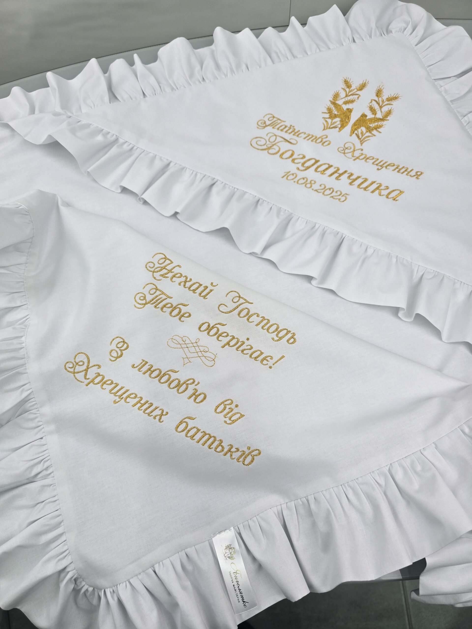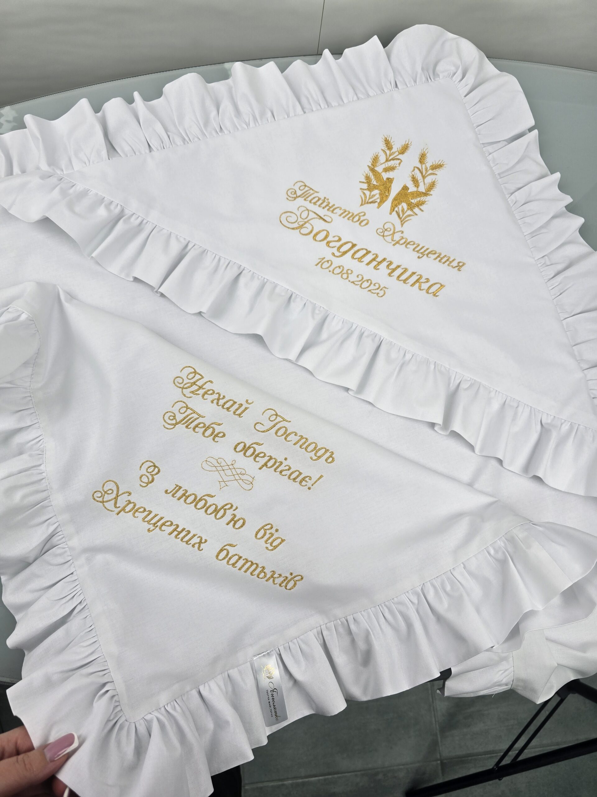Елегантна крижма з ранфорсу та велюру — це ідеальний вибір для таїнства хрещення, що поєднує ніжність натуральної тканини та преміальний вигляд велюрової основи