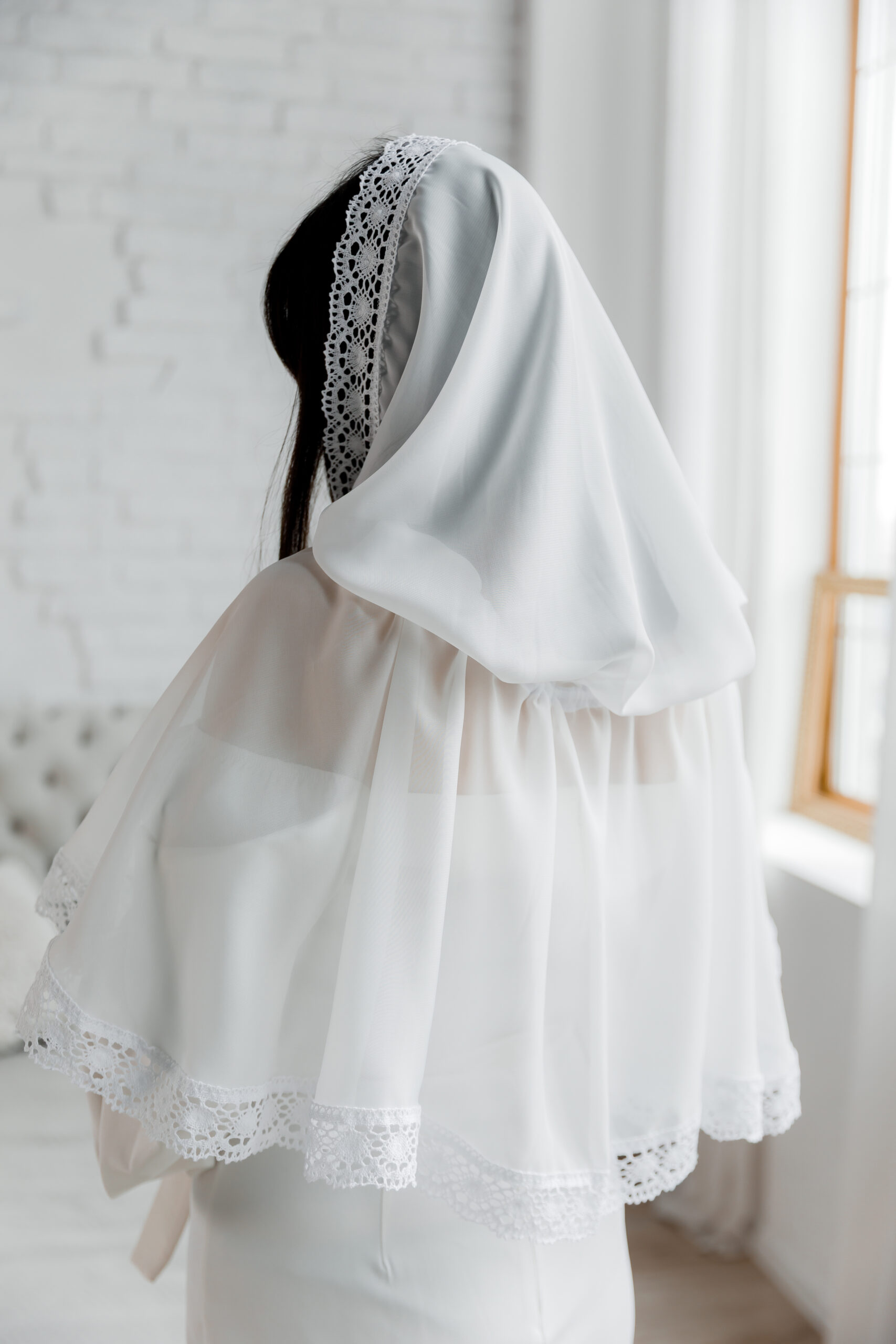 Палантин з білим лляним мереживом від ТМ «Янголятко» — це витончена накидка, яка додає образу ніжності, елегантності та урочистості