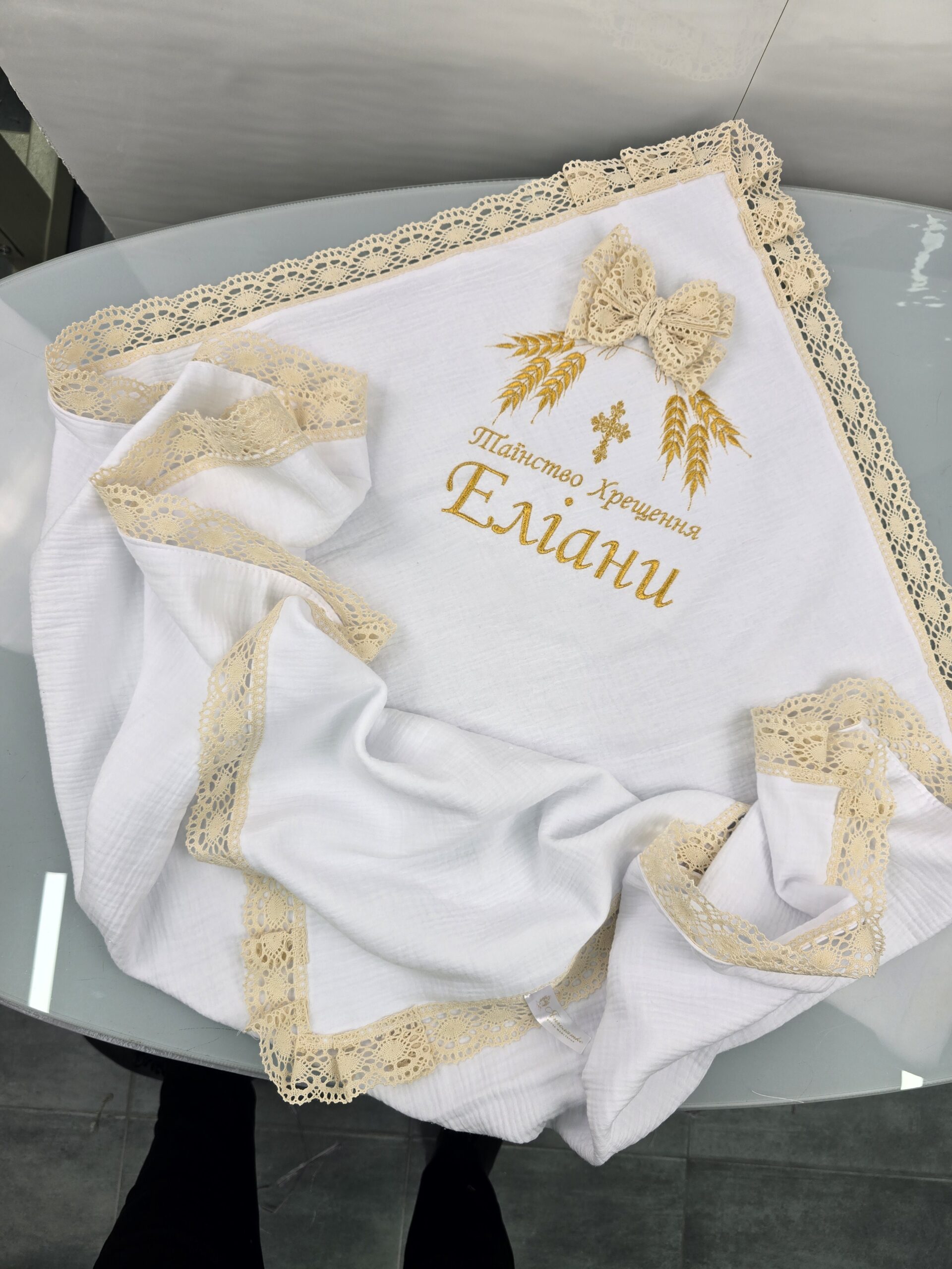 Подвійна муслінова крижма з вишивкою