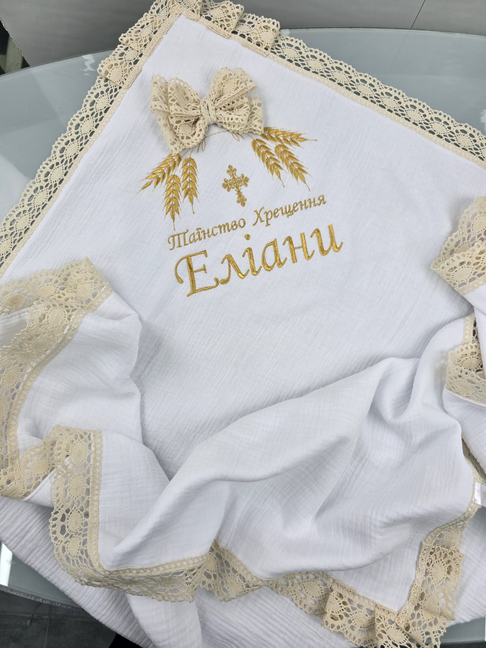 Подвійна муслінова крижма для хрещення з вишивкою ТМ «Янголятко»